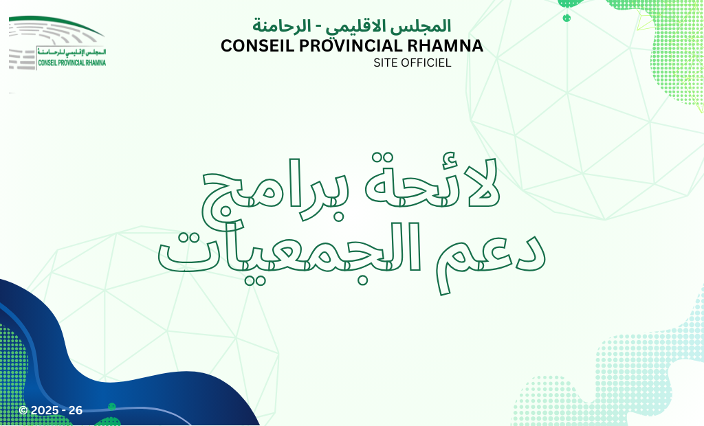 المكتبة الإلكترونية برامج دعم الجمعيات على مستوى الإقليم لائحة برامج الدعم لصالح الجمعيات – الرحامنة admin فبراير 20, 2026