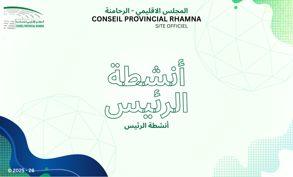 كلمة السيد الرئيس كلمة الرئيس admin فبراير 10, 2026 0 بسم الله الرحمان الرحيم و الصلاة و السلام على أشرف الأنبياء و المرسلين تقوم التنمية المنشودة بإقليم الرحامنة على رؤية… ...إقرأ المزيد