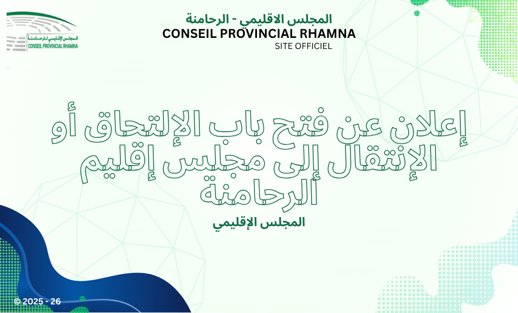 المجلس الاقليمي إعلان عن فتح باب الإلتحاق أو الإنتقال إلى مجلس إقليم الرحامنة admin أبريل 10, 2026 0 ...إقرأ المزيد
